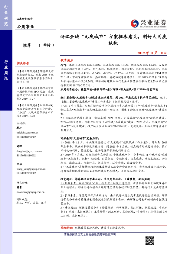 【兴业证券】【20191110】浙江全域‘无废城市’方案征求意见,利好大固废板块-10页