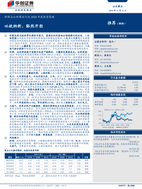 【华创证券】【20191111】环保与公用事业行业2020年度投资策略-35页