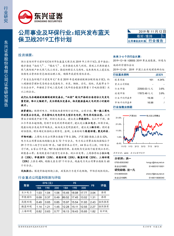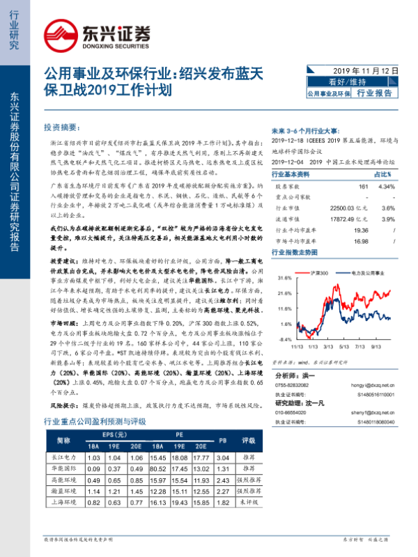 【东兴证券】【20191112】绍兴发布蓝天保卫战2019工作计划-8页