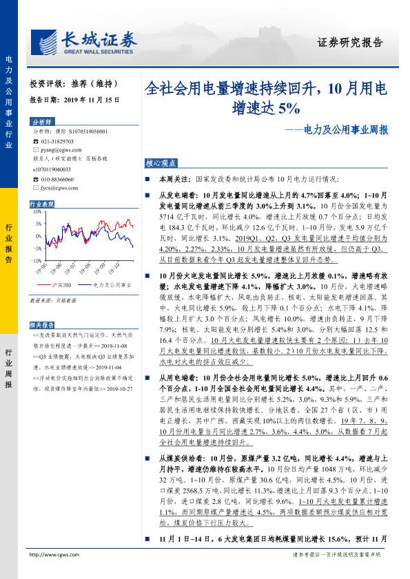 【长城证券】【20191115】全社会用电量增速持续回升,10月用电增速达5%-13页