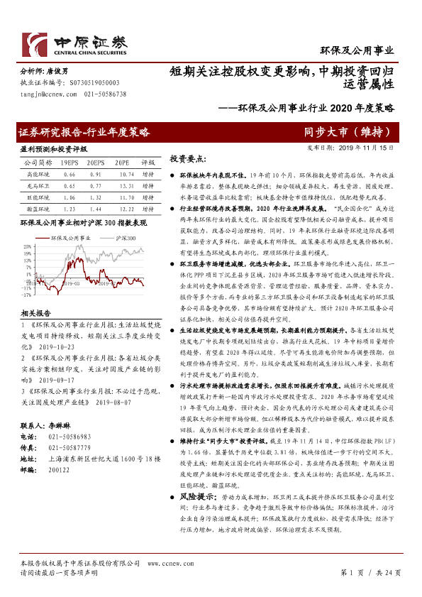 公用事业 投资策略 控股权变更 环保行业 运营属性
