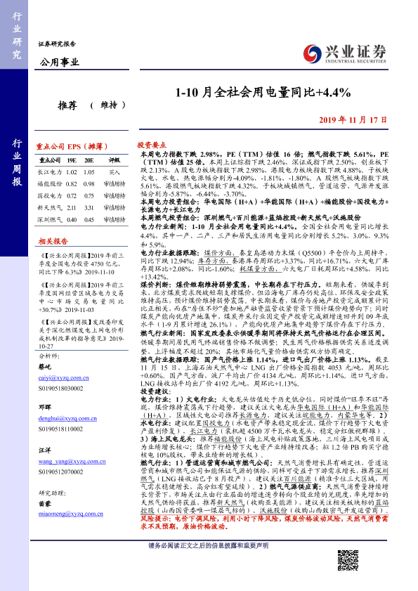 兴业证券 电力热力燃气水生产 2019年 PDF 1.04 MB