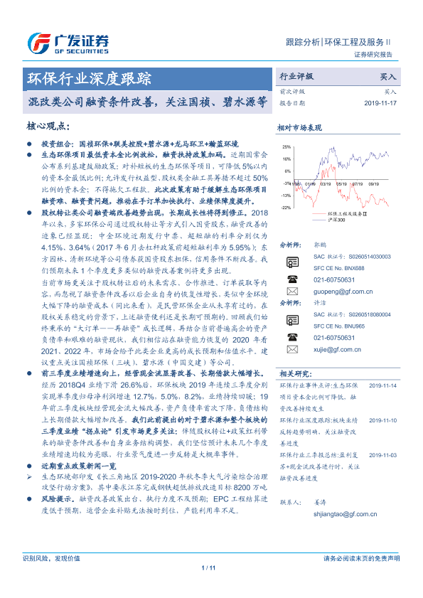 【广发证券】【20191117】环保行业深度跟踪:混改类公司融资条件改善,关注国祯、碧水源等-11页