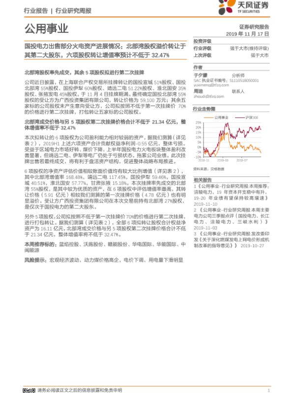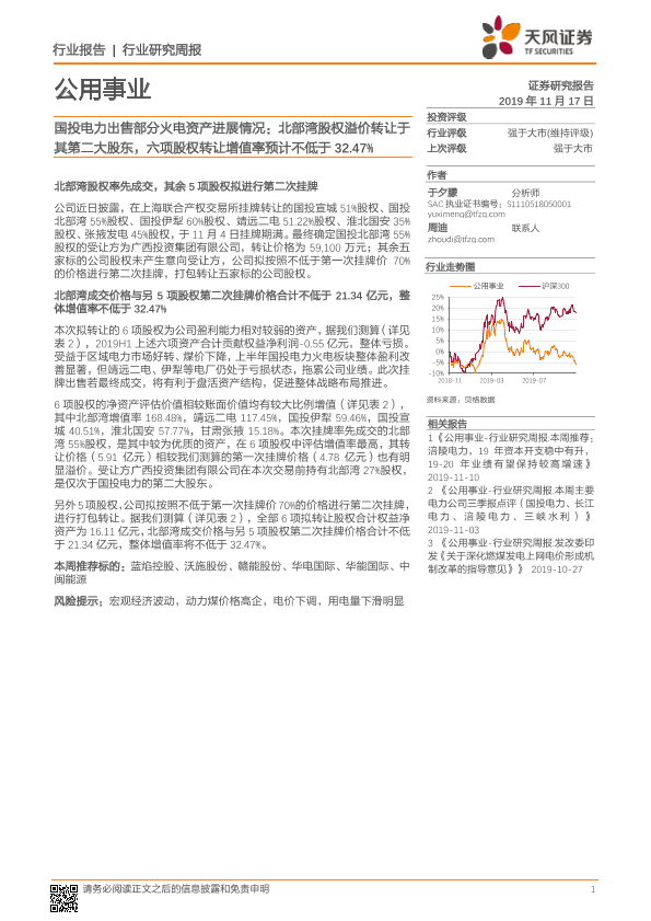 【天风证券】【20191117】公用事业行业研究周报:国投电力出售部分火电资产进展情况-8页