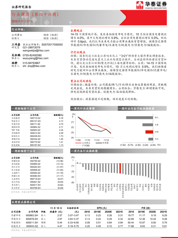 【华泰证券】【20191117】公用事业 环保Ⅱ行业周报(第四十六周)-9页