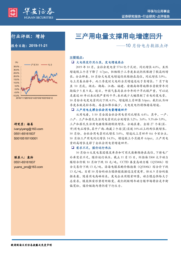 【华安证券】【20191121】10月份电力数据点评:三产用电量支撑用电增速回升-2页