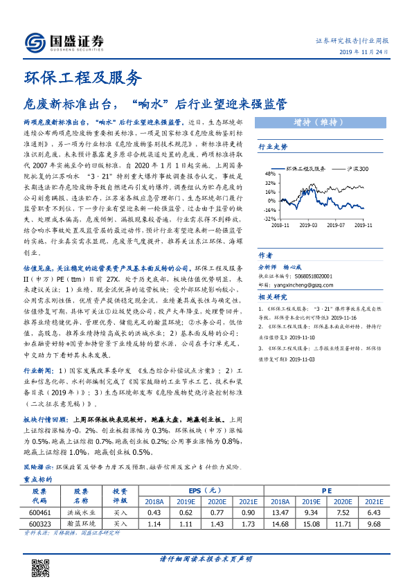 【国盛证券】【20191124】环保工程及服务行业周报:危废新标准出台,“响水”后行业望迎来强监管-11页