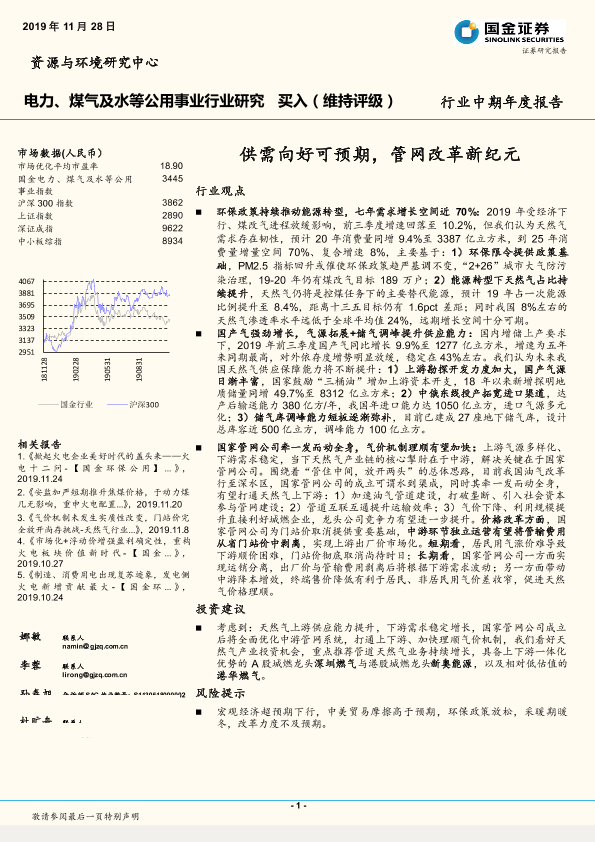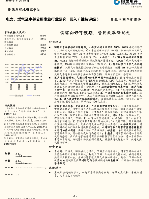 【国金证券】【20191128】电力、煤气及水等公用事业行业研究:供需向好可预期,管网改革新纪元-20页