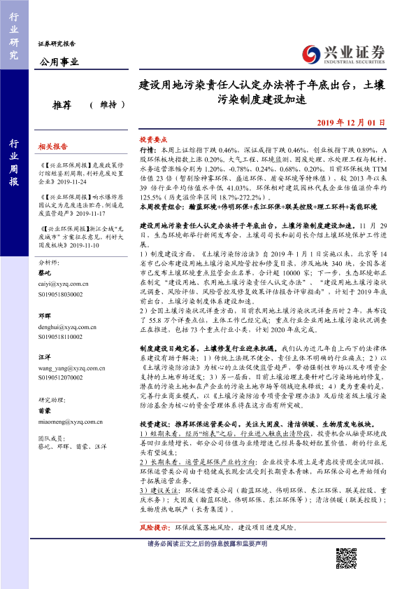 【兴业证券】【20191201】建设用地污染责任人认定办法将于年底出台,土壤污染制度建设加速-10页