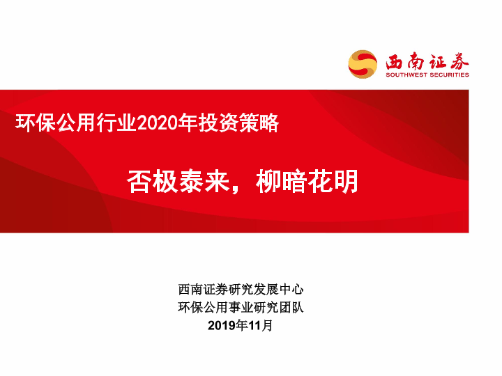 【西南证券】【20191201】环保公用行业2020年投资策略:否极泰来,柳暗花明-24页
