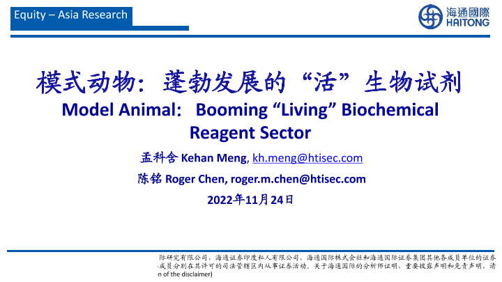 【海通国际】【20221124】模式动物行业:蓬勃发展的“活”生物试剂-57页