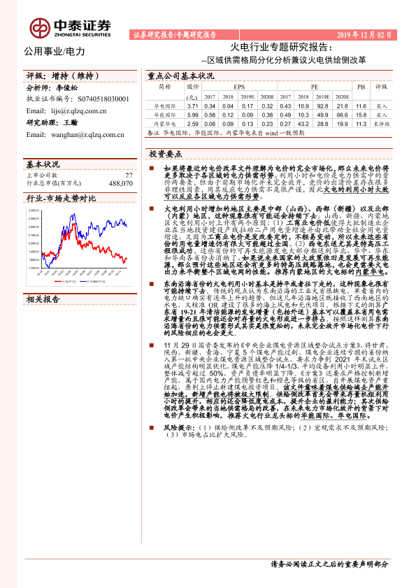 【中泰证券】【20191202】火电行业专题研究报告:区域供需格局分化分析兼议火电供给侧改革-13页