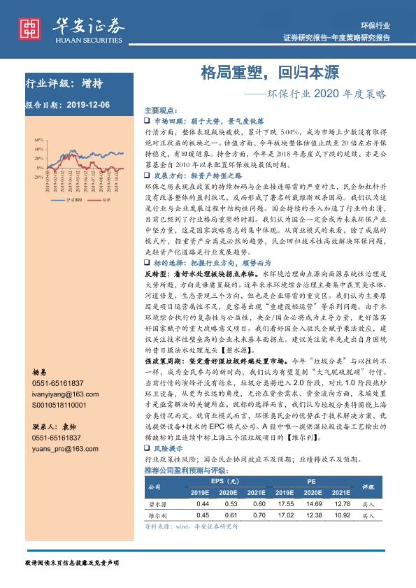 【华安证券】【20191206】环保行业2020年度策略:格局重塑,回归本源-23页