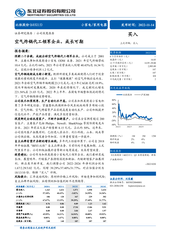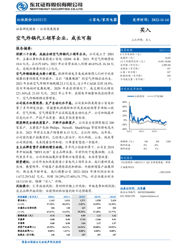 【东北证券】【20221114】比依股份(603215)空气炸锅代工领军企业,成长可期-24页