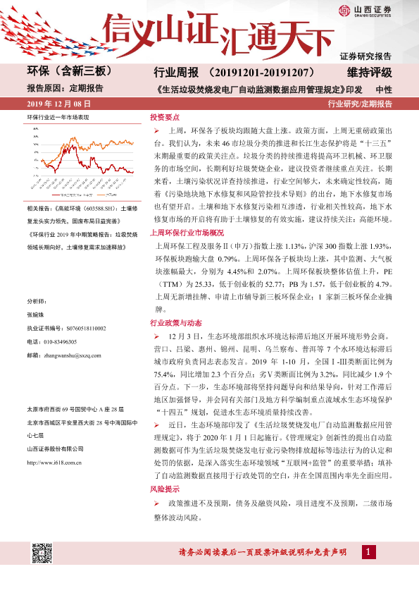 【山西证券】【20191208】环保(含新三板)行业周报:《生活垃圾焚烧发电厂自动监测数据应用管理规定》印发-11页