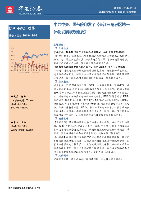 【华安证券】【20191209】环保与公用事业行业每周报告:中共中央、国务院印发了《长江三角洲区域一体化发展规划纲要》-8页