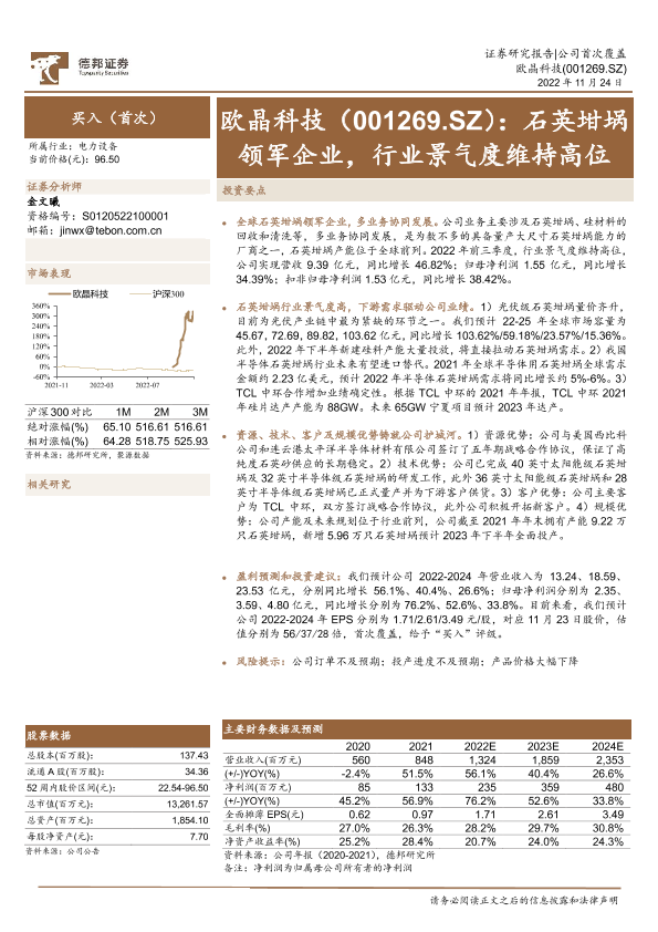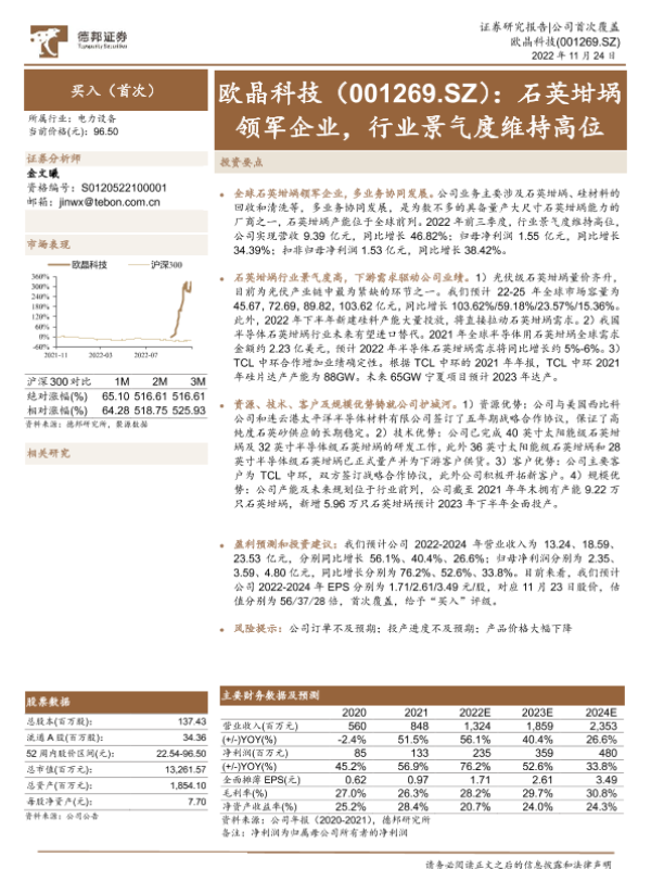 【德邦证券】【20221124】欧晶科技:石英坩埚领军企业,行业景气度维持高位-26页