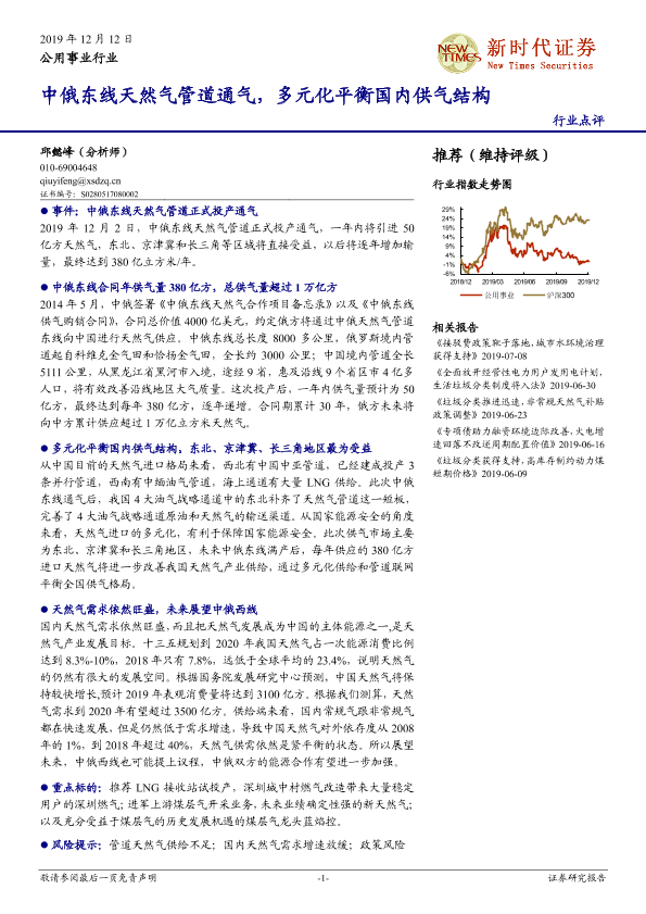 【新时代证券】【20191212】公用事业行业点评:中俄东线天然气管道通气,多元化平衡国内供气结构-3页