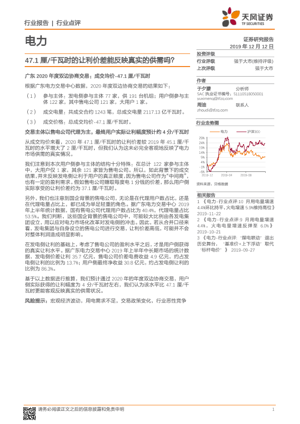 【天风证券】【20191212】47.1厘 千瓦时的让利价差能反映真实的供需吗?-2页