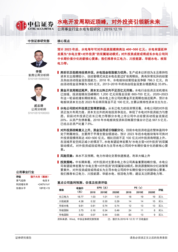 【中信证券】【20191219】公用事业行业水电专题研究:水电开发周期近顶峰,对外投资引领新未来-14页