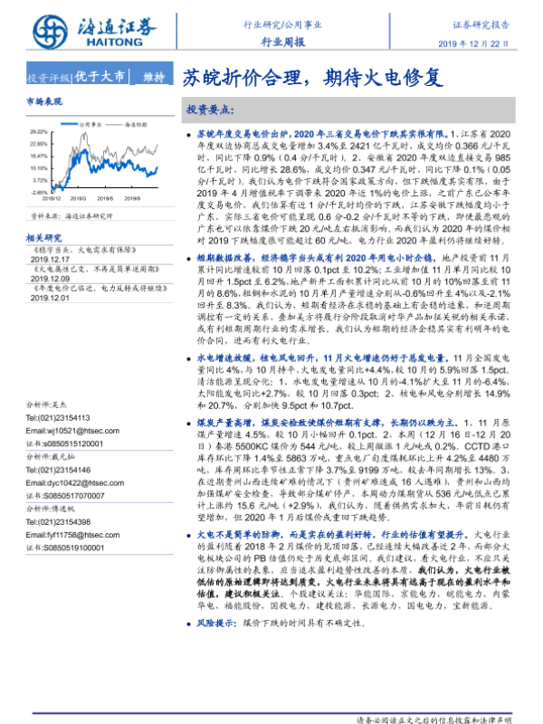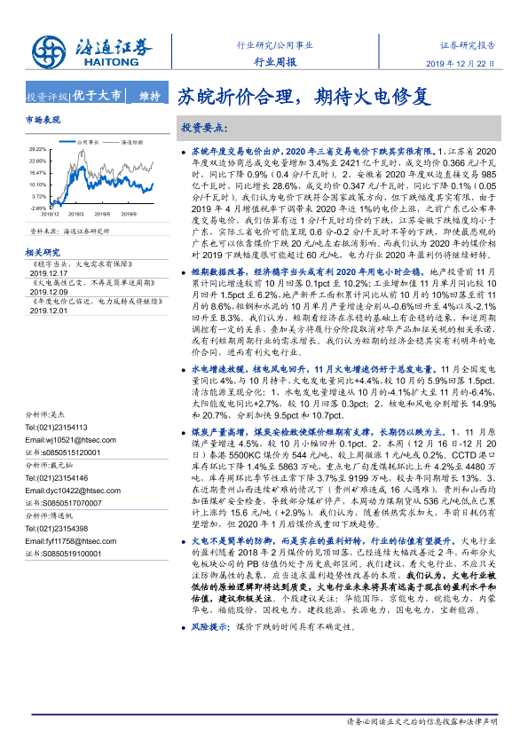 【海通证券】【20191222】公用事业行业周报:苏皖折价合理,期待火电修复-2页