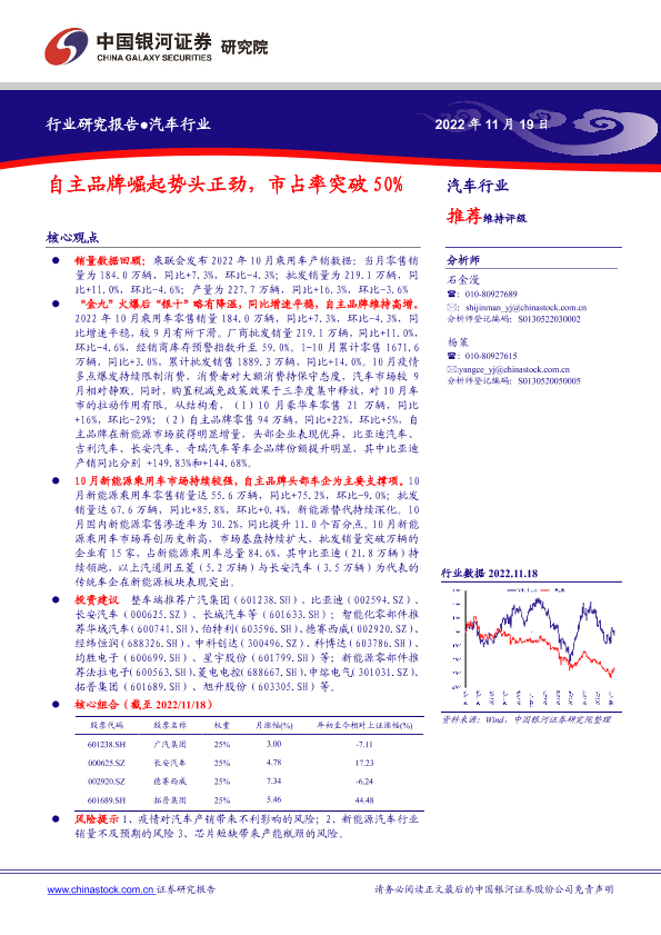 【银河证券】【20221119】汽车行业:自主品牌崛起势头正劲,市占率突破50%-18页