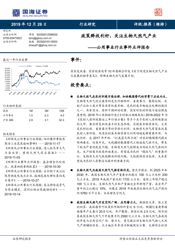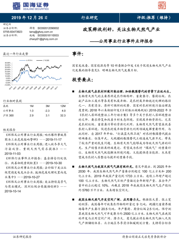 【国海证券】【20191226】公用事业行业事件点评报告:政策释放利好,关注生物天然气产业-4页