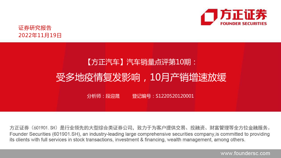 【方正证券】【20221119】汽车行业销量点评第10期:受多地疫情复发影响,10月产销增速放缓-37页