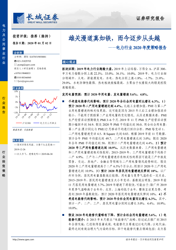 【长城证券】【20200102】电力行业2020年度策略报告:雄关漫道真如铁,而今迈步从头越-30页