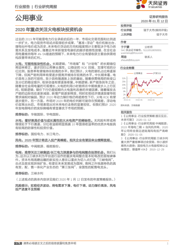 【天风证券】【20200112】2020年重点关注火电板块投资机会-6页