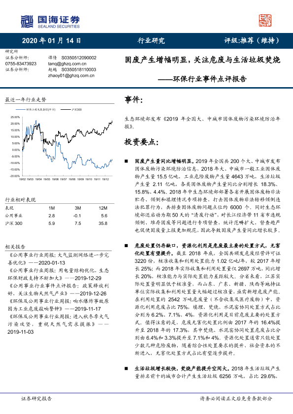 【国海证券】【20200114】固废产生增幅明显,关注危废与生活垃圾焚烧-4页