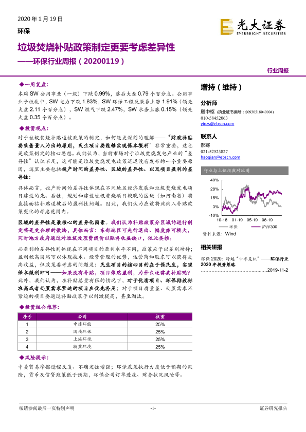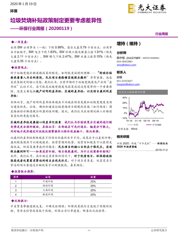 【光大证券】【20200119】环保行业周报:垃圾焚烧补贴政策制定更要考虑差异性-19页