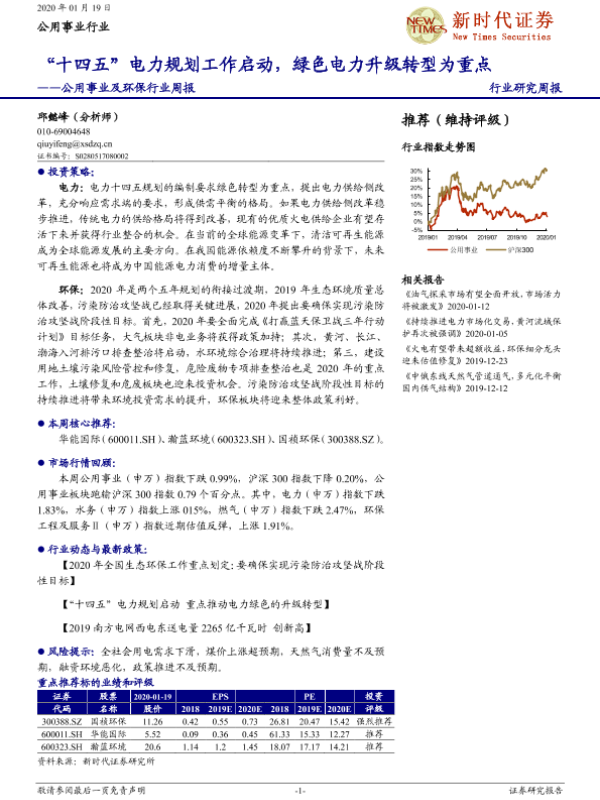 【新时代证券】【20200119】‘十四五’电力规划工作启动,绿色电力升级转型为重点-11页