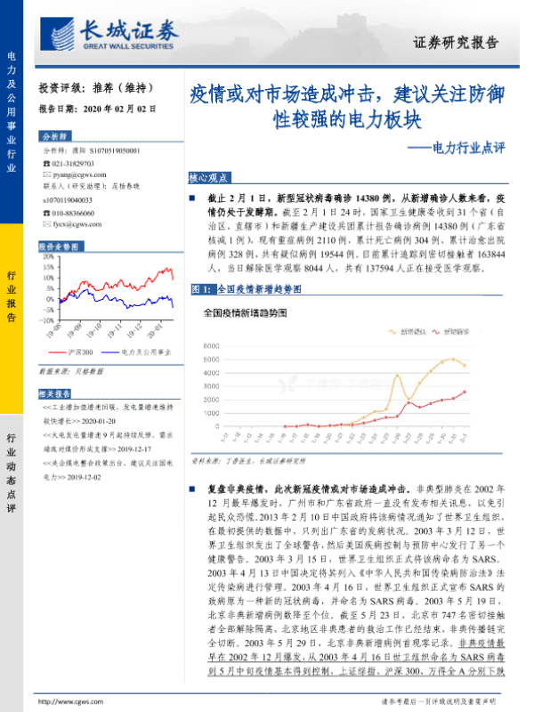 【长城证券】【20200202】电力行业点评:疫情或对市场造成冲击,建议关注防御性较强的电力板块-4页