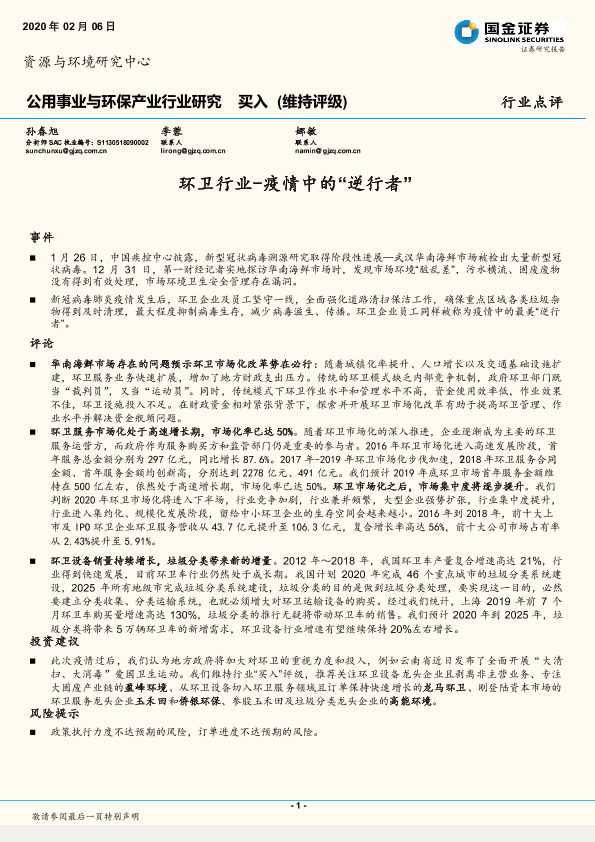 【国金证券】【20200206】环卫行业-疫情中的“逆行者”-3页