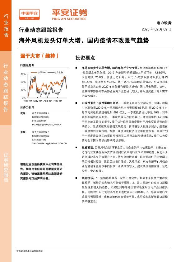 【平安证券】【20200209】电力设备行业动态跟踪报告:海外风机龙头订单大增,国内疫情不改景气趋势-9页