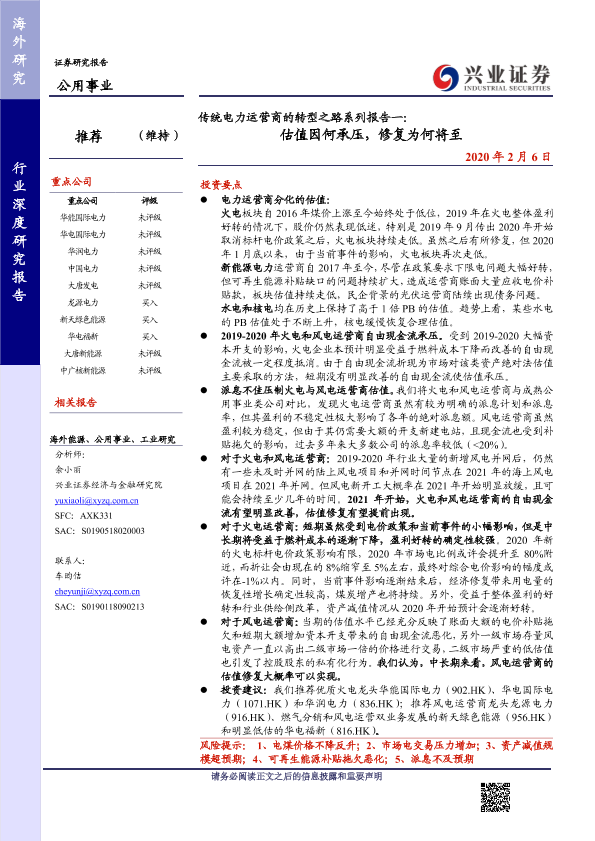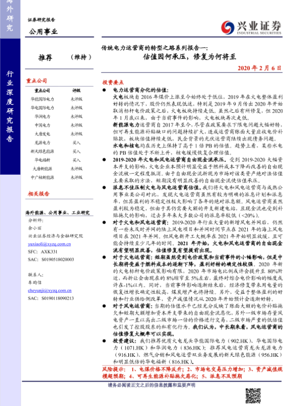 【兴业证券】【20200206】传统电力运营商的转型之路系列报告一:估值因何承压,修复为何将至-37页