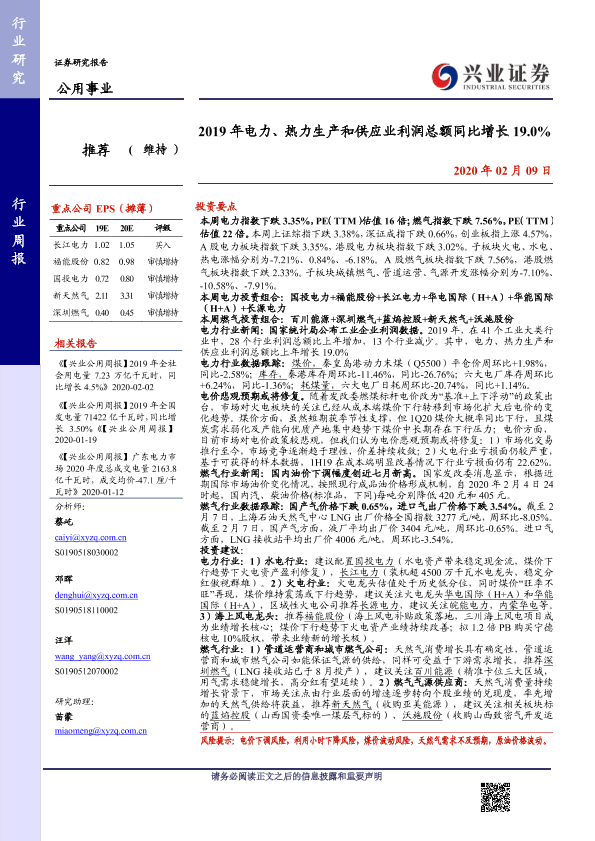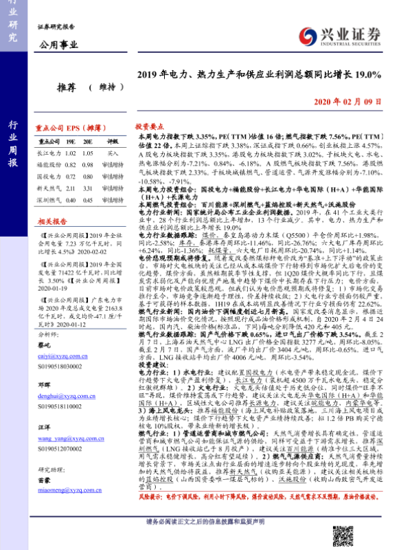 【兴业证券】【20200209】2019年电力、热力生产和供应业利润总额同比增长19.0%-14页