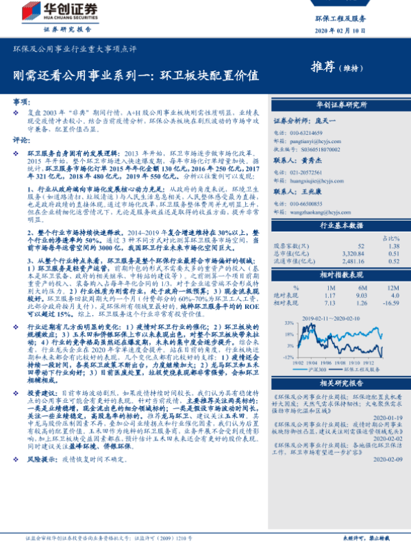 【华创证券】【20200210】环保及公用事业行业重大事项点评:刚需还看公用事业系列一:环卫板块配置价值-4页