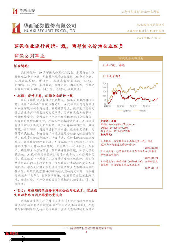 【华西证券】【20200210】环保公用事业行业研究周报:环保企业逆行疫情一线,两部制电价为企业减负-14页