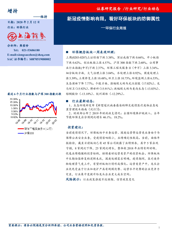 【上海证券】【20200212】环保行业周报:新冠疫情影响有限,看好环保板块的防御属性-6页