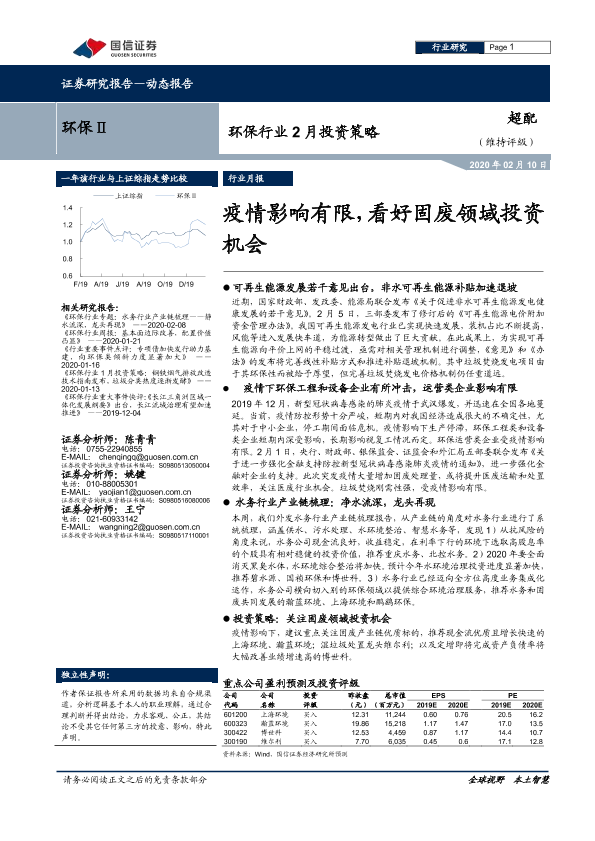 【国信证券】【20200210】2月投资策略:疫情影响有限,看好固废领域投资机会-15页