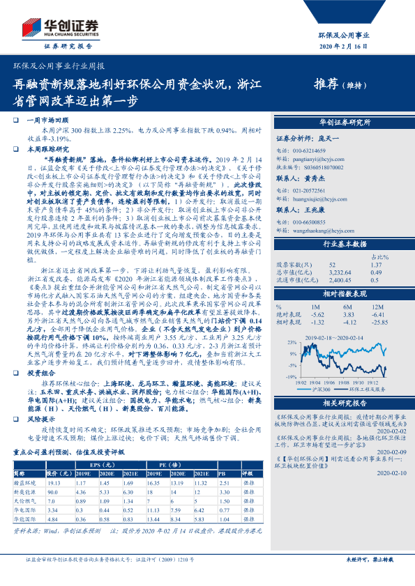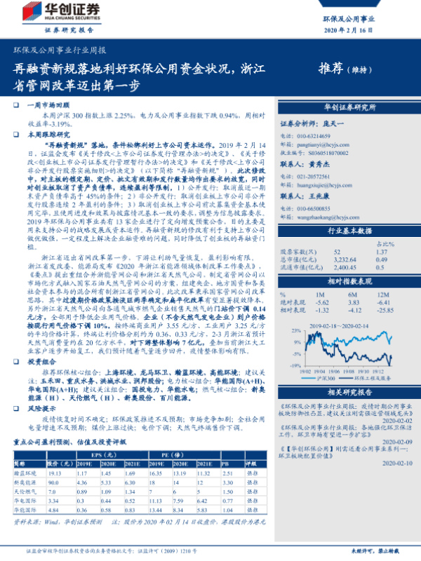 【华创证券】【20200216】环保及公用事业行业周报:再融资新规落地利好环保公用资金状况,浙江省管网改革迈出第一步-30页