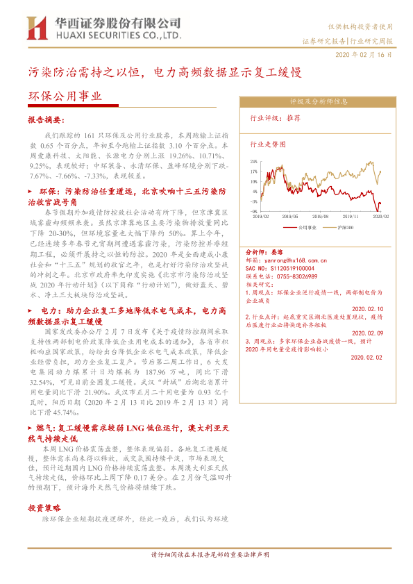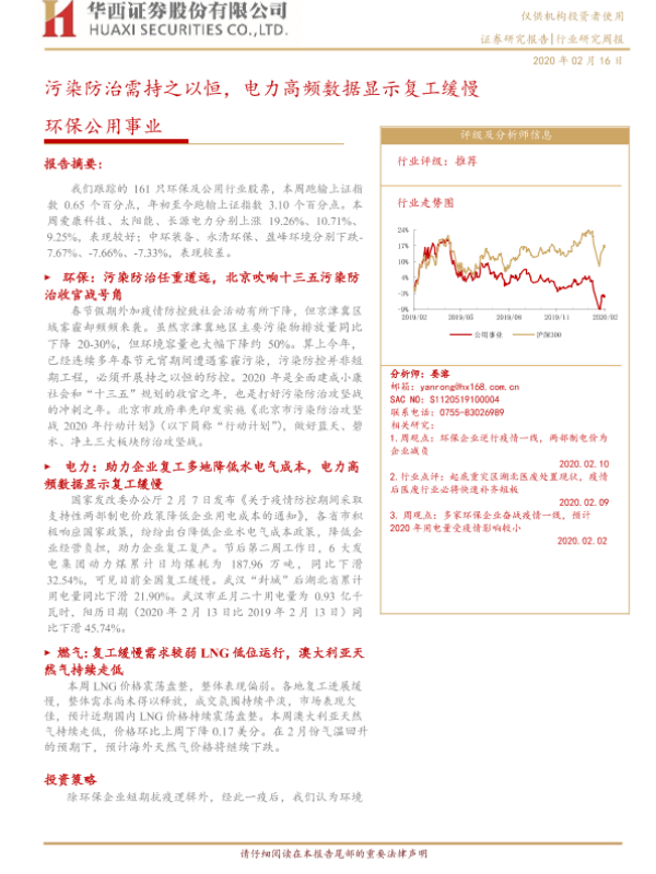 【华西证券】【20200216】环保公用事业:污染防治需持之以恒,电力高频数据显示复工缓慢-19页