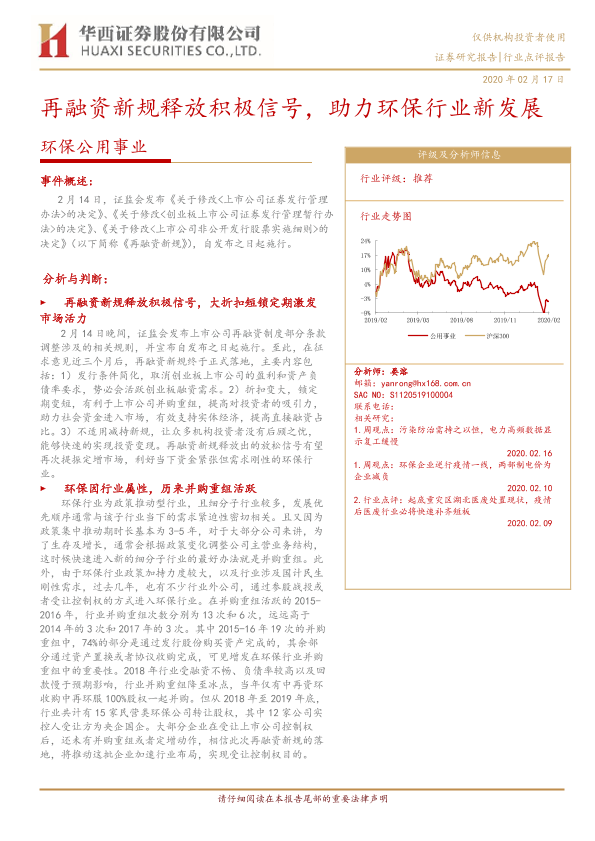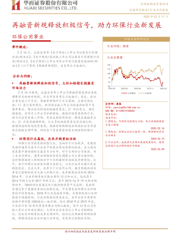 【华西证券】【20200217】环保公用事业:再融资新规释放积极信号,助力环保行业新发展-4页