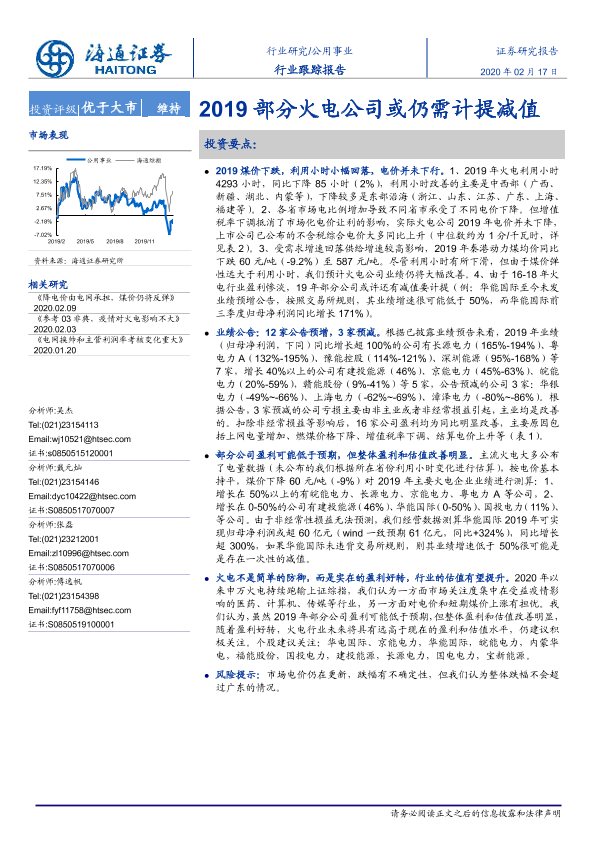 【海通证券】【20200217】2019部分火电公司或仍需计提减值-4页