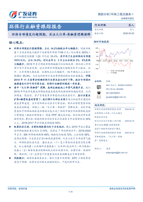 【广发证券】【20200220】环保行业融资跟踪报告:环保专项债发行超预期,关注大订单-再融资逻辑演绎-4页