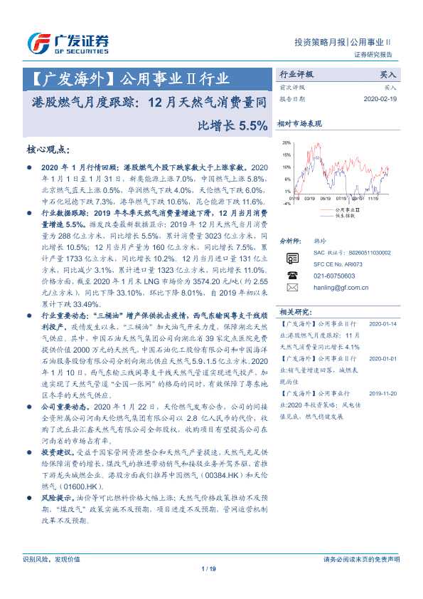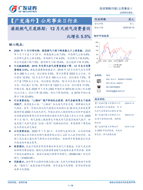 【广发证券】【20200219】港股燃气月度跟踪:12月天然气消费量同比增长5.5%-19页