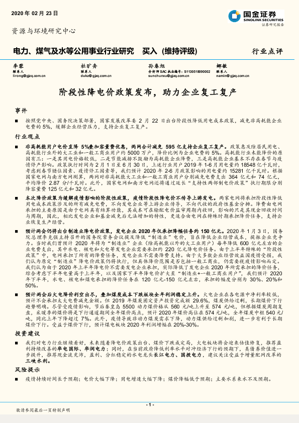 【国金证券】【20200223】阶段性降电价政策发布,助力企业复工复产-3页