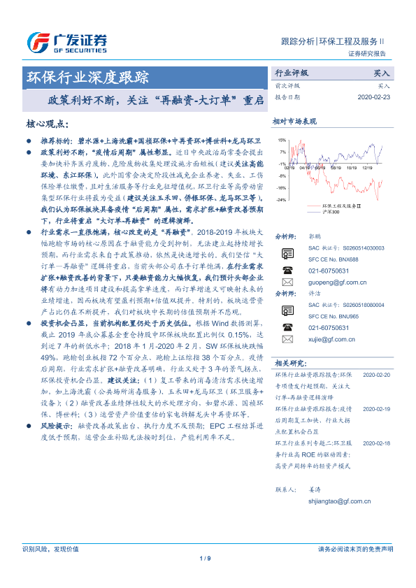 【广发证券】【20200223】环保行业深度跟踪:政策利好不断,关注“再融资-大订单”重启-9页